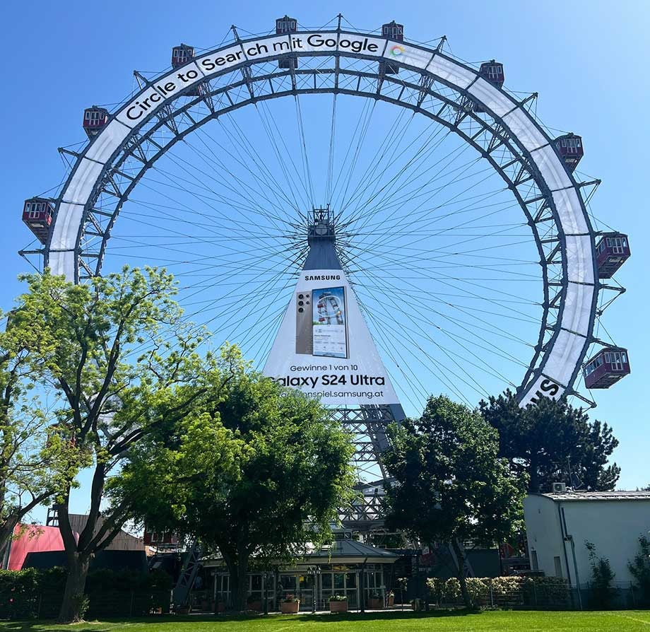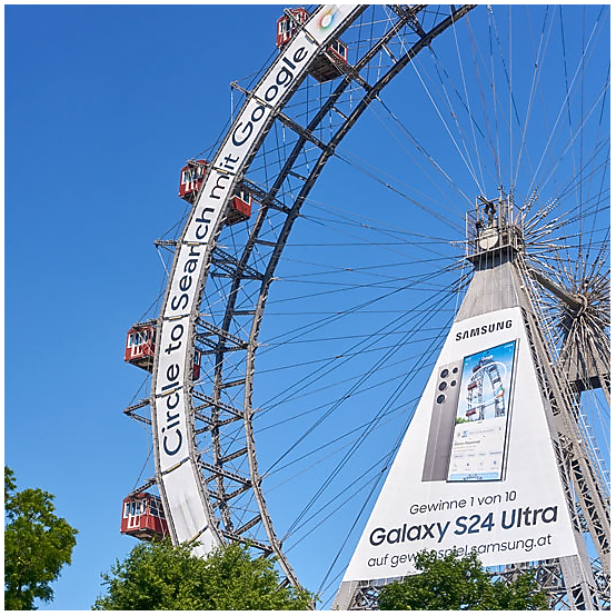 Advertising on Vienna’s iconic Riesenrad (Giant Ferris Wheel) is nothing new—but our challenge for the Galaxy S24 Ultra launch was to use it in a completely innovative way. Targeting a “Generation AI” audience, we aimed to go beyond static branding and create an interactive experience that blurred the lines between the physical and digital worlds, generating buzz across all of Austria.